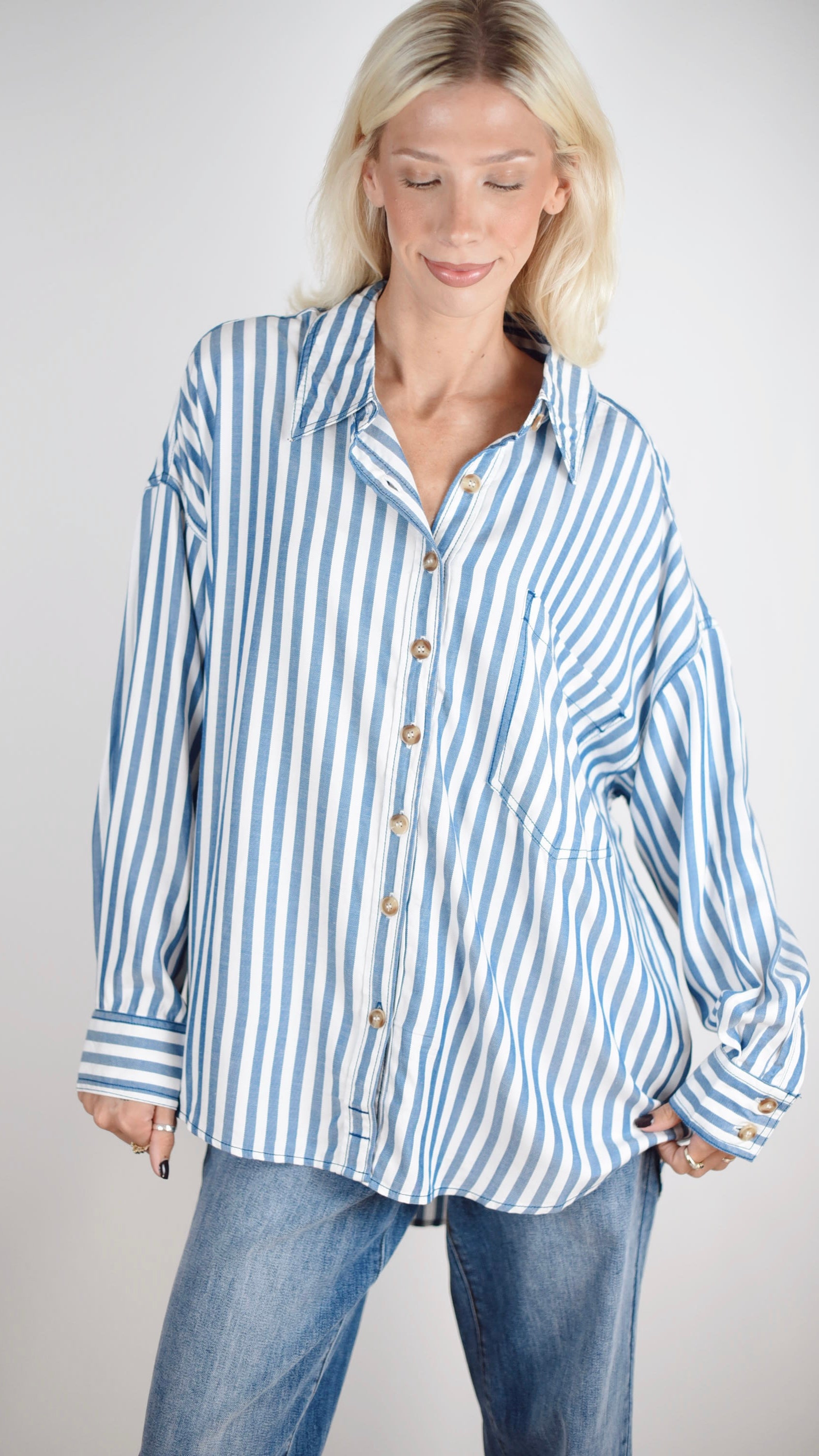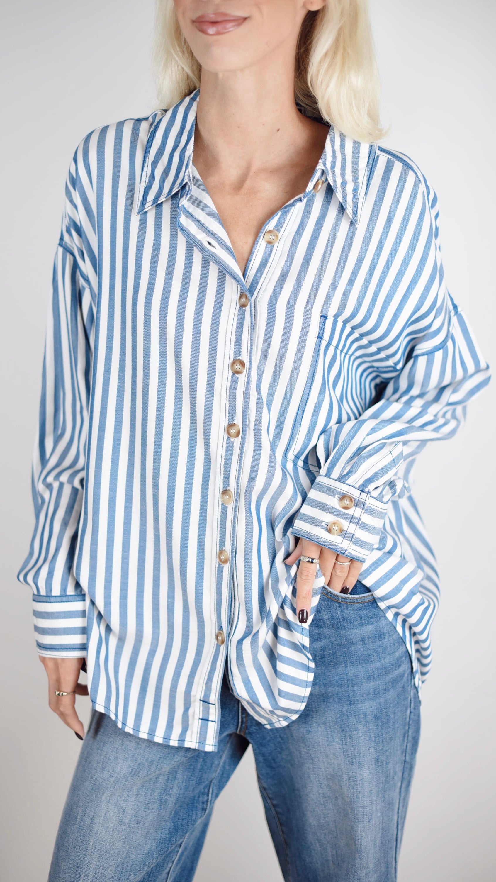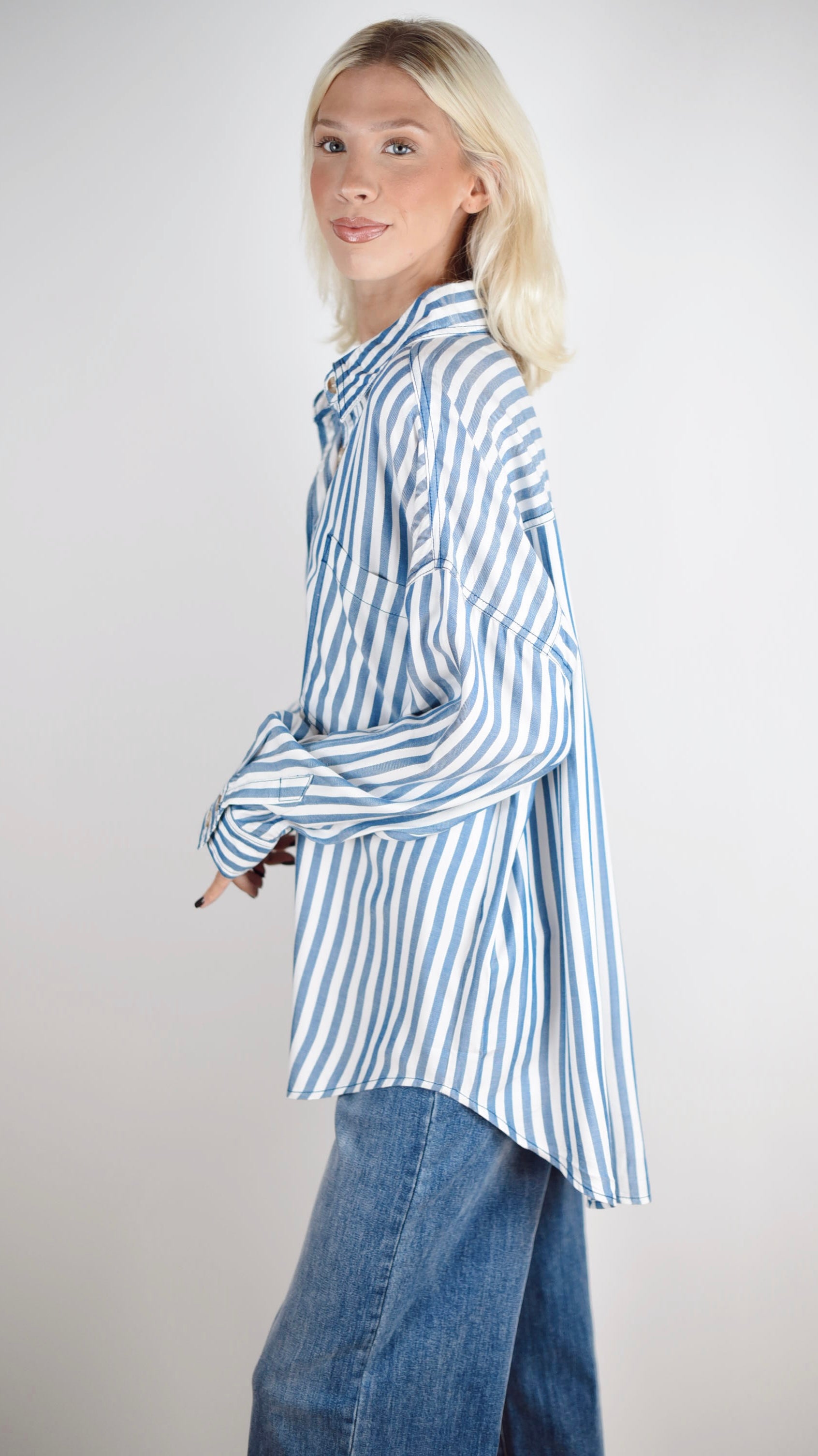 The Molly Top is a great staple and versatile piece for any wardrobe. The classic strip pattern is easy to style for any occasion. Wear as is, or toss on with your favorite sweater or vest as the perfect layering piece.