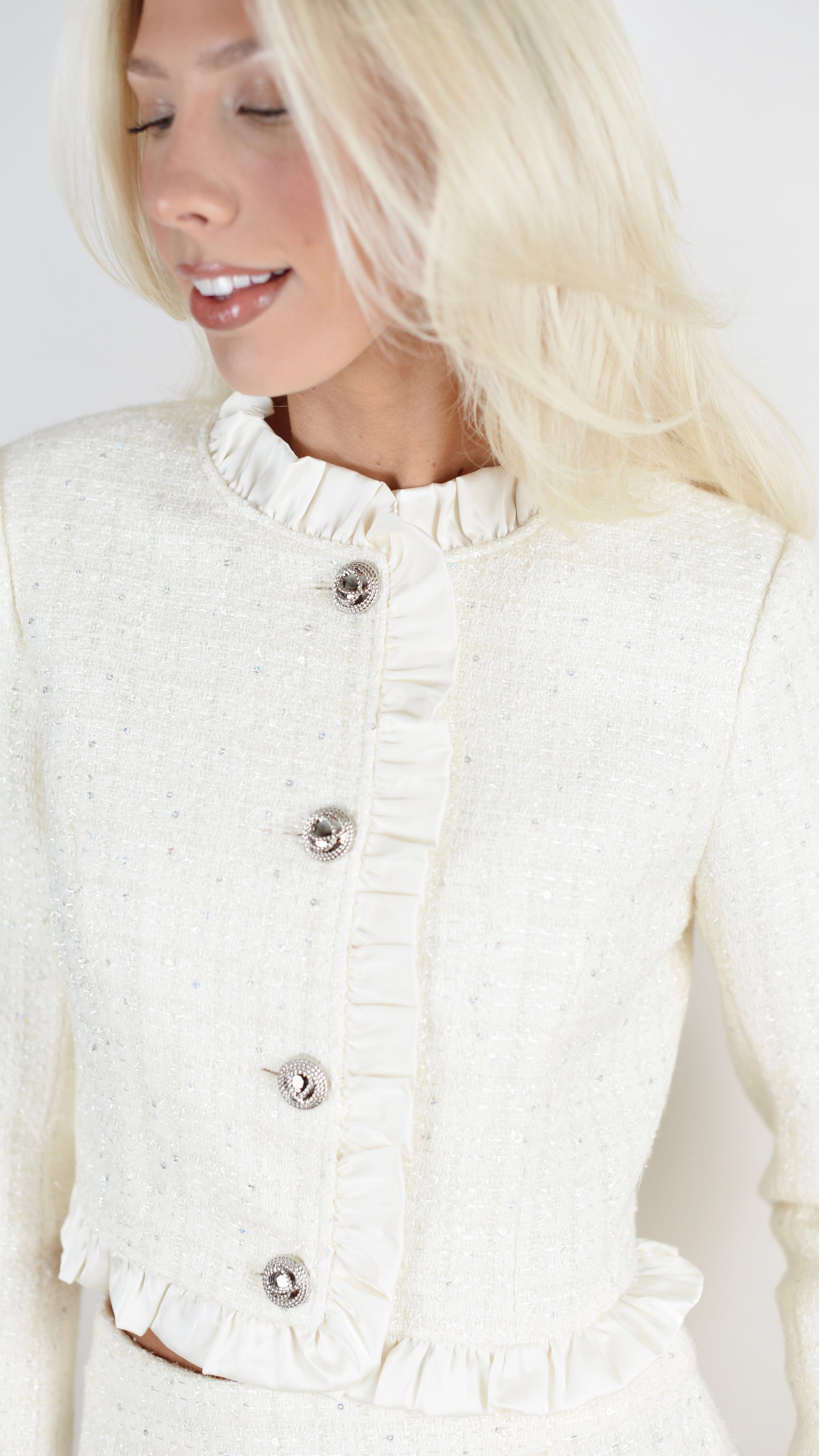 Top: Bust 36”, Shoulder Width 15”, Length 18”, Sleeve Length 25.5”