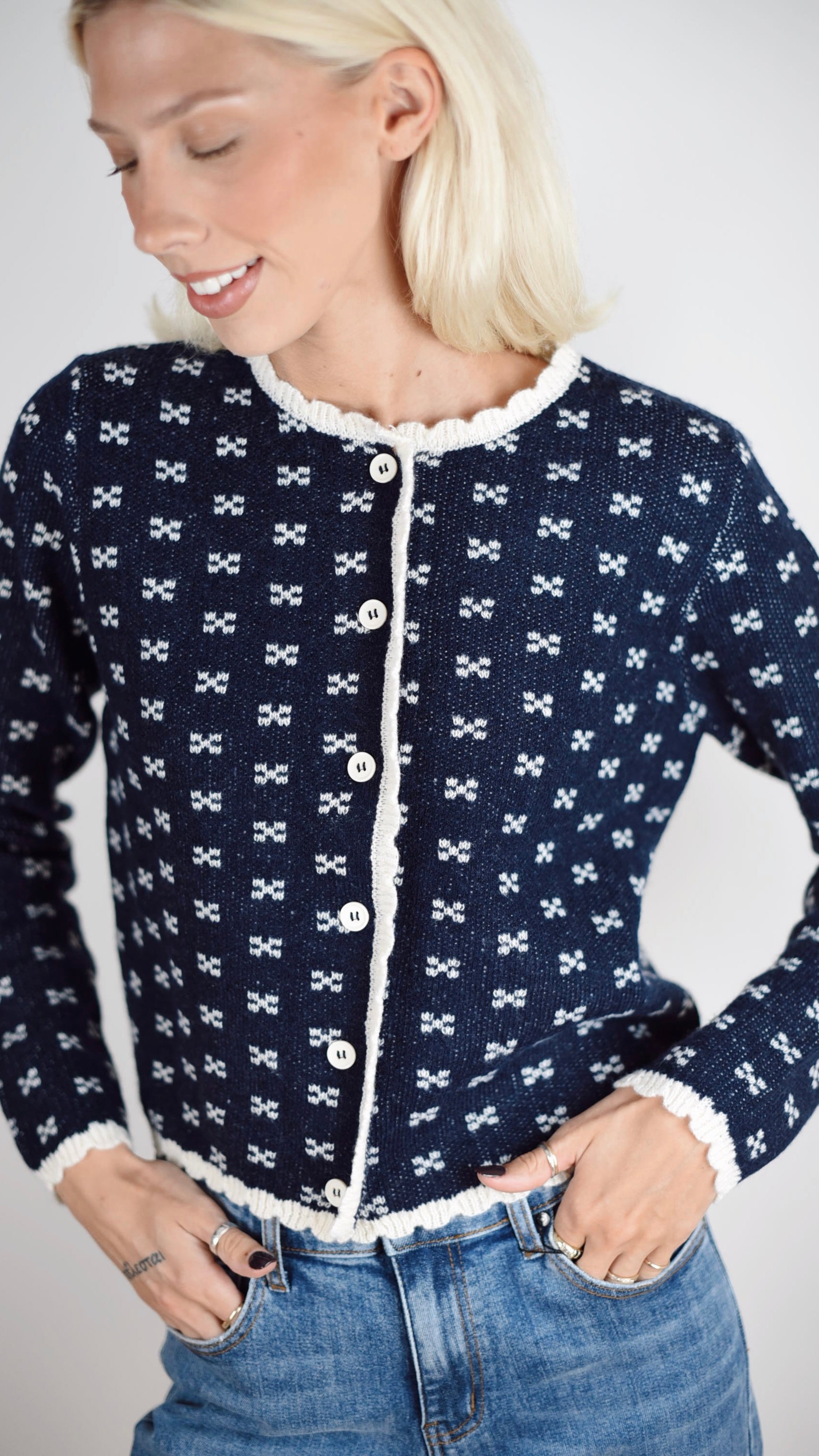 The Sylvia Sweater is a super feminine sweater that is the perfect addition to your fall wardrobe. This sweater features a delicate block pattern with ruffle trim details, and an ultra soft material to keep you extra cozy. Pair with a skirt and your favorite pair of flats for that classic, girly look.